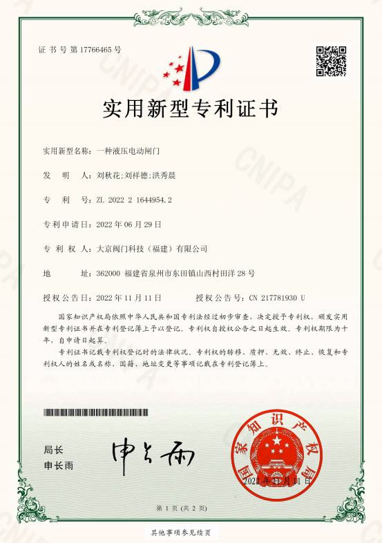 - 专利证书
